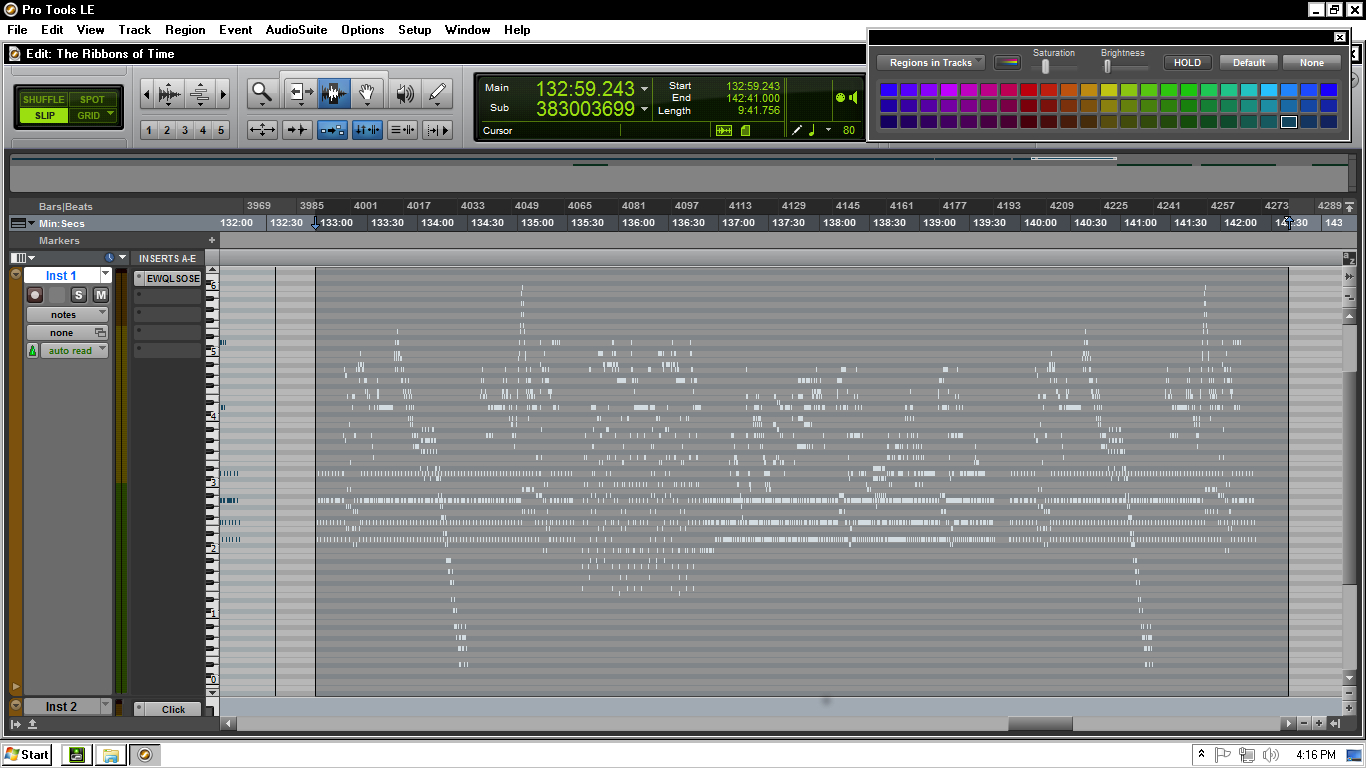 Saturday night March 8, 2014 Los Angeles - I just got finished recording The Ribbons of Time. I played it straight through. I changed the volume of 5 notes. I did no other corrections on midi.